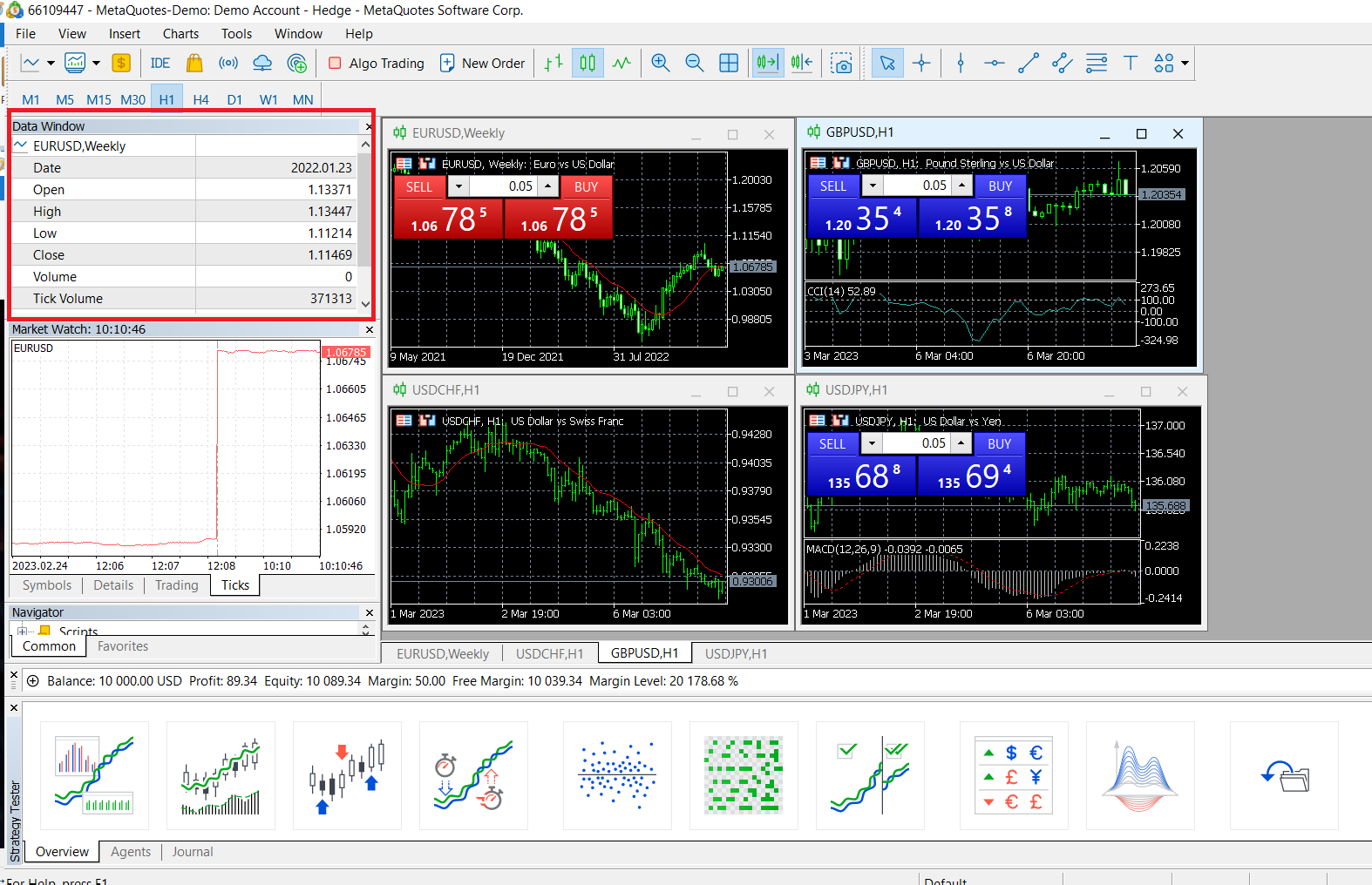 تتضمن القائمة الرئيسية جميع الوظائف تقريبًا في MT5 ، والتي تساعد المستخدمين على إجراء عمليات الرسم البياني وتحليل الأدوات وإعدادات النظام الأساسي ، إلخ. تتكون القائمة الرئيسية من الوظائف الرئيسية لكل من [ملف] و [عرض] و [إدراج] و [أدوات المخطط] و [نافذة] و [مساعدة].