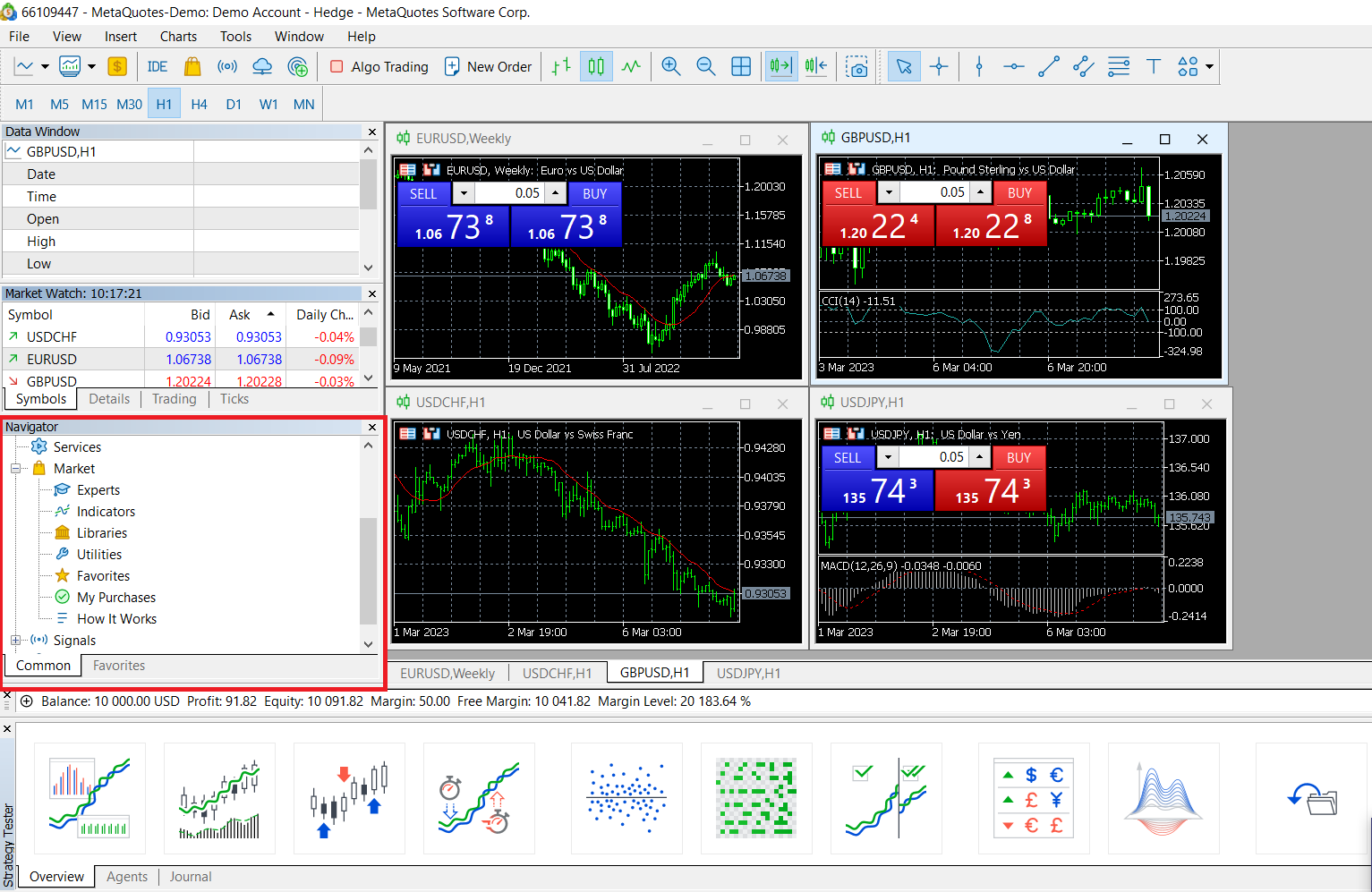 يمكن للمستخدمين التبديل بين حسابات التداول المختلفة ضمن [الحساب] في [التنقل] ، وتعيين المؤشرات ومعاملات EA.