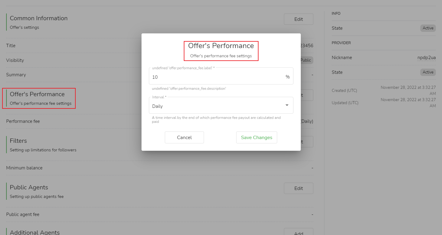 Here you can set the performance fee for this copying condition.