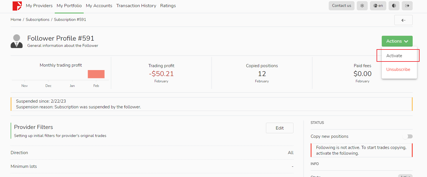 Si los seguidores quieren dejar de seguir, deben hacer clic en el botón rojo [Cancelar suscripción].