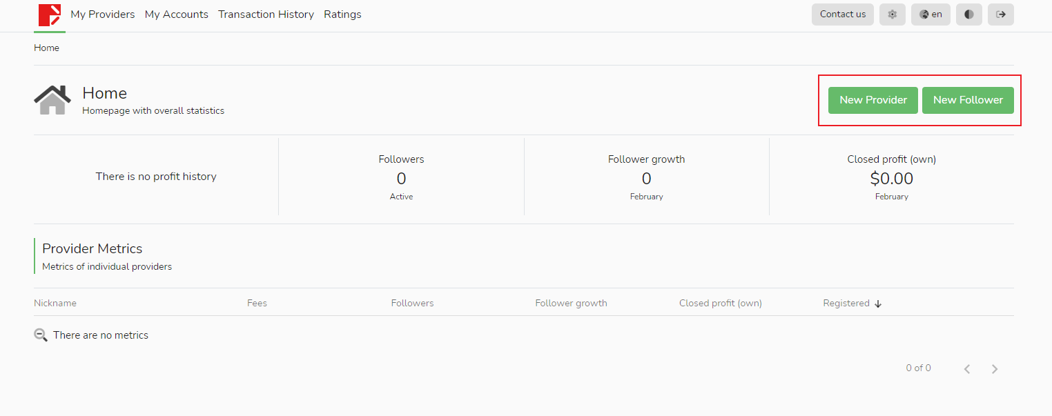 En la página [Mi cuenta] de la fuente de la señal, puede agregar una nueva cuenta comercial haciendo clic en el botón verde [Crear]. Sin embargo, esta cuenta no se puede utilizar para iniciar sesión y solo se puede seleccionar como fuente de señal, seguidor o configurada para recibir tarifas de rendimiento.