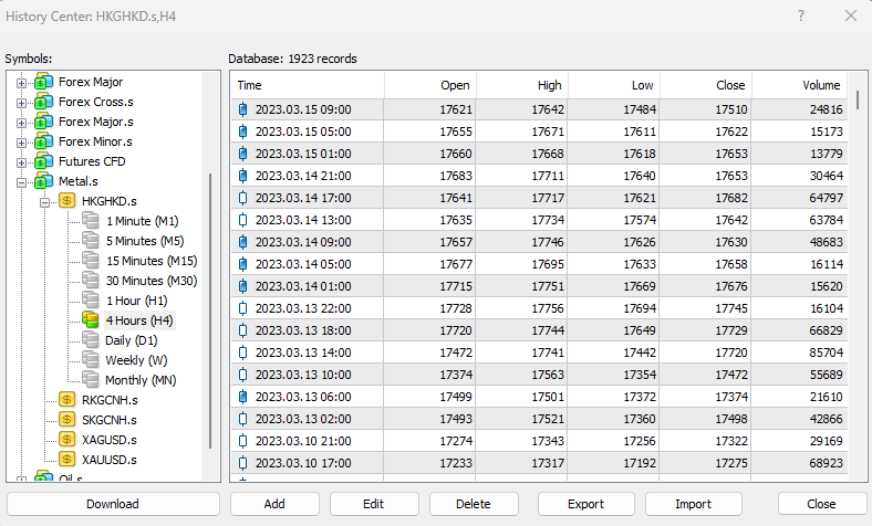 1. Inicie sesión en MT4 y haga clic en "Centro de datos históricos" en la barra de menú superior.