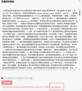 안녕하세요, Dp Funded 개인 백엔드에서 왼쪽의 [동의]를 클릭하여 입력하면 아래 스크린샷에 표시된 페이지가 나타납니다. 이미 D Prime에 등록하셨다면, [서명 및 제출]을 바로 클릭하신 후, 인증코드를 받으시고 계약서에 서명하시면 됩니다.