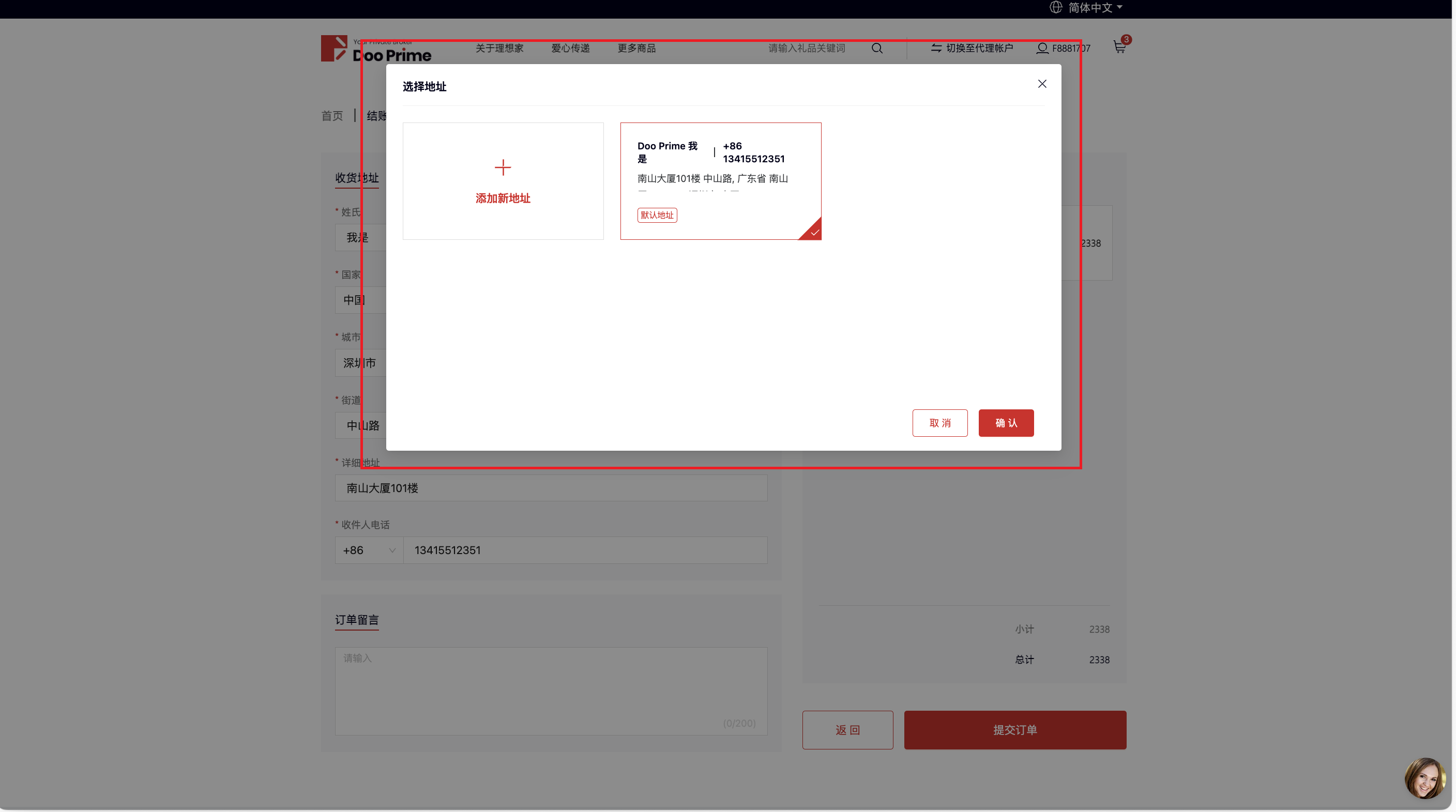 4. 배송 정보를 입력하고 주문을 제출하세요. 기본 주소를 설정하고 최대 20개의 맞춤 주소를 저장할 수도 있습니다.