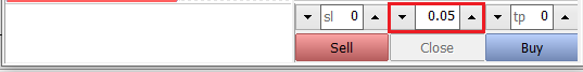Na caixa vermelha da janela de transação de clique, insira o tamanho da posição que deseja negociar e, em seguida, clique em Vender ou Comprar para comprar ou vender a posição de negociação definida ao preço atual mais recente.