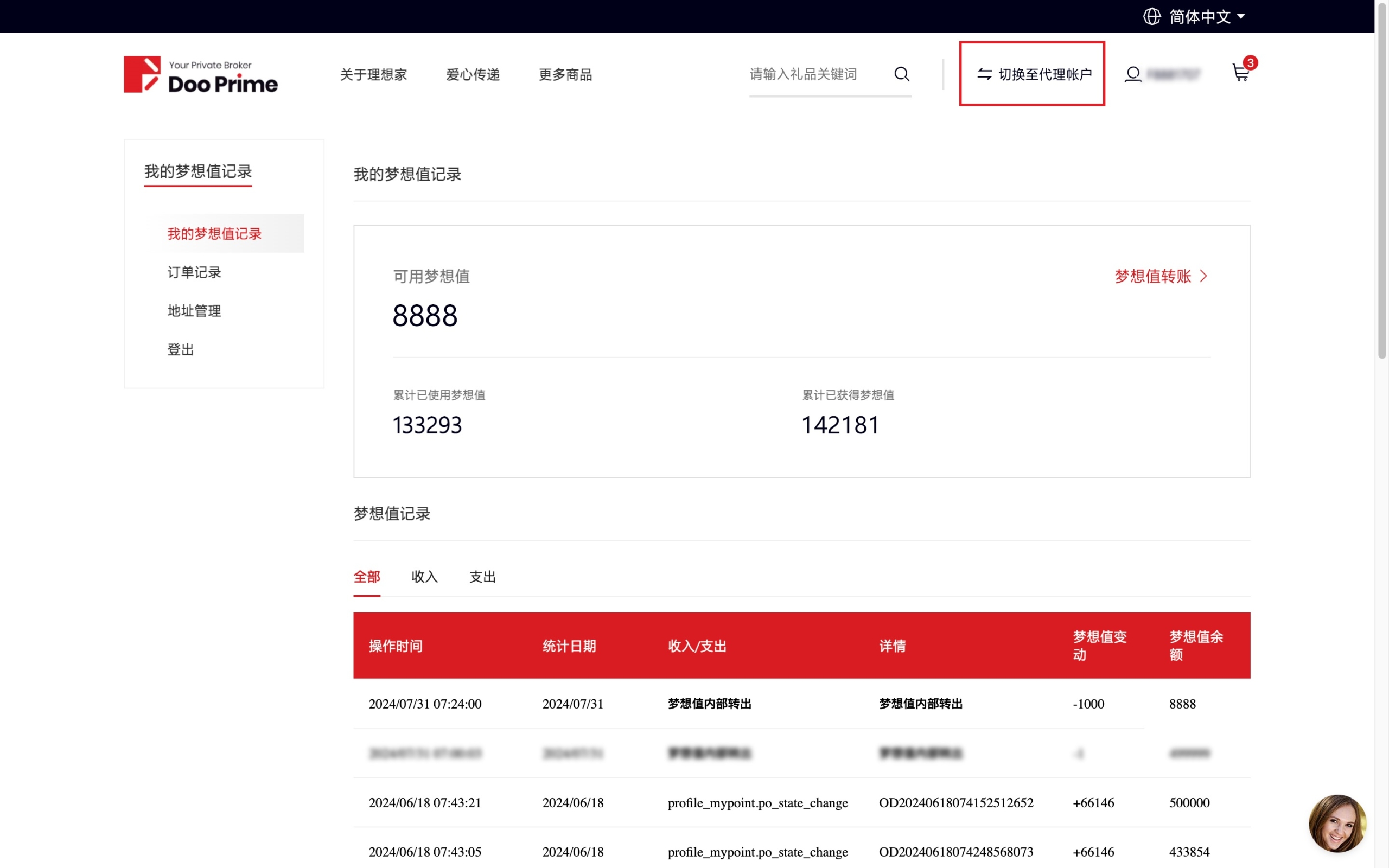 Chuyển đổi vai trò tài khoản ở góc trên bên phải thanh điều hướng để xem trạng thái điểm của tài khoản cùng tên.