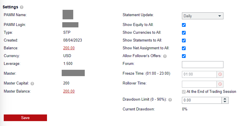 a. Đăng nhập và tạo tài khoản PAMM mới. Để biết chi tiết về việc tạo tài khoản, hãy xem "Cách mở tài khoản PAMM với Doo PAMM?".