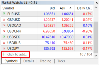 3.3 Cách thêm ký hiệu giao dịch trong MT5